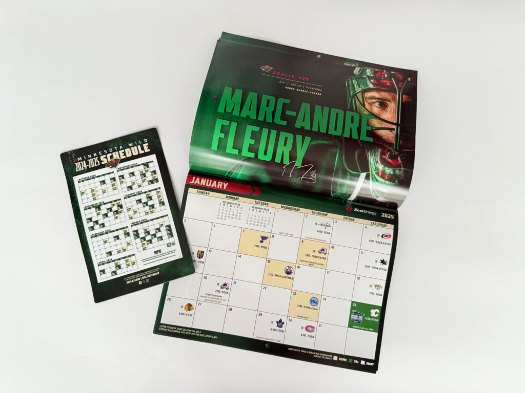 Klubowy ścienny kalendarz na obecny sezon 2024-2025 rozpoczynający się od października 2024 i kończący na grudniu 2025 wraz ze sporym magnesem